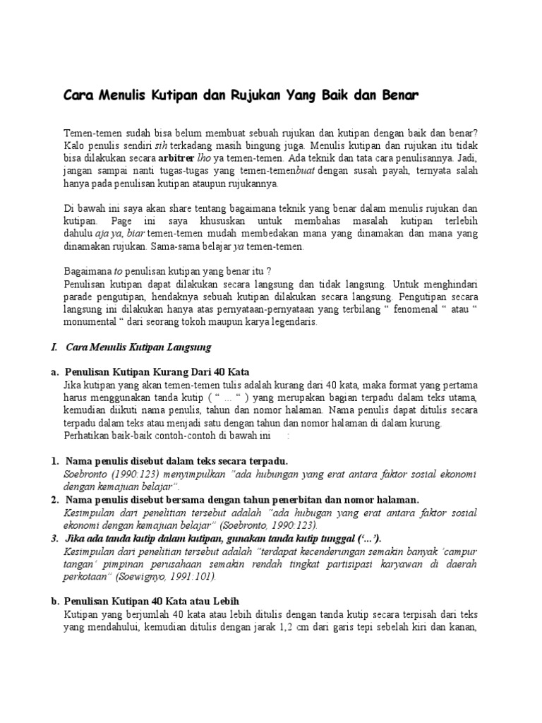 Cara Menulis Kutipan Dan Rujukan Yang Baik Dan Benar Pdf